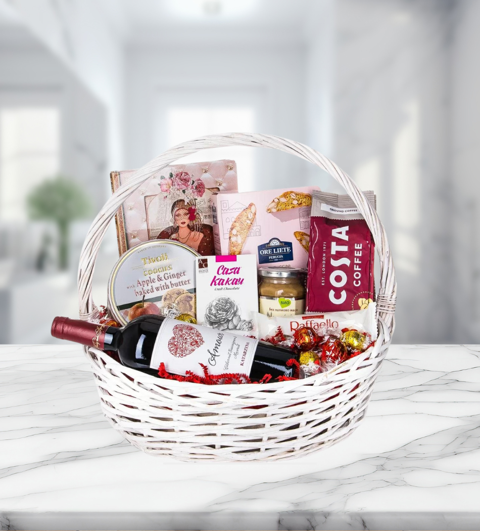 Подаръчна кошница с вино Katarzhyna Amour и белгийски бонбони, код 741