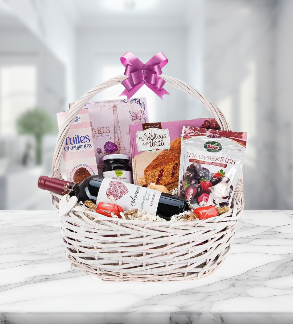 Подаръчна кошница с вино Katarzyna Amour и италиански сладки , код 910